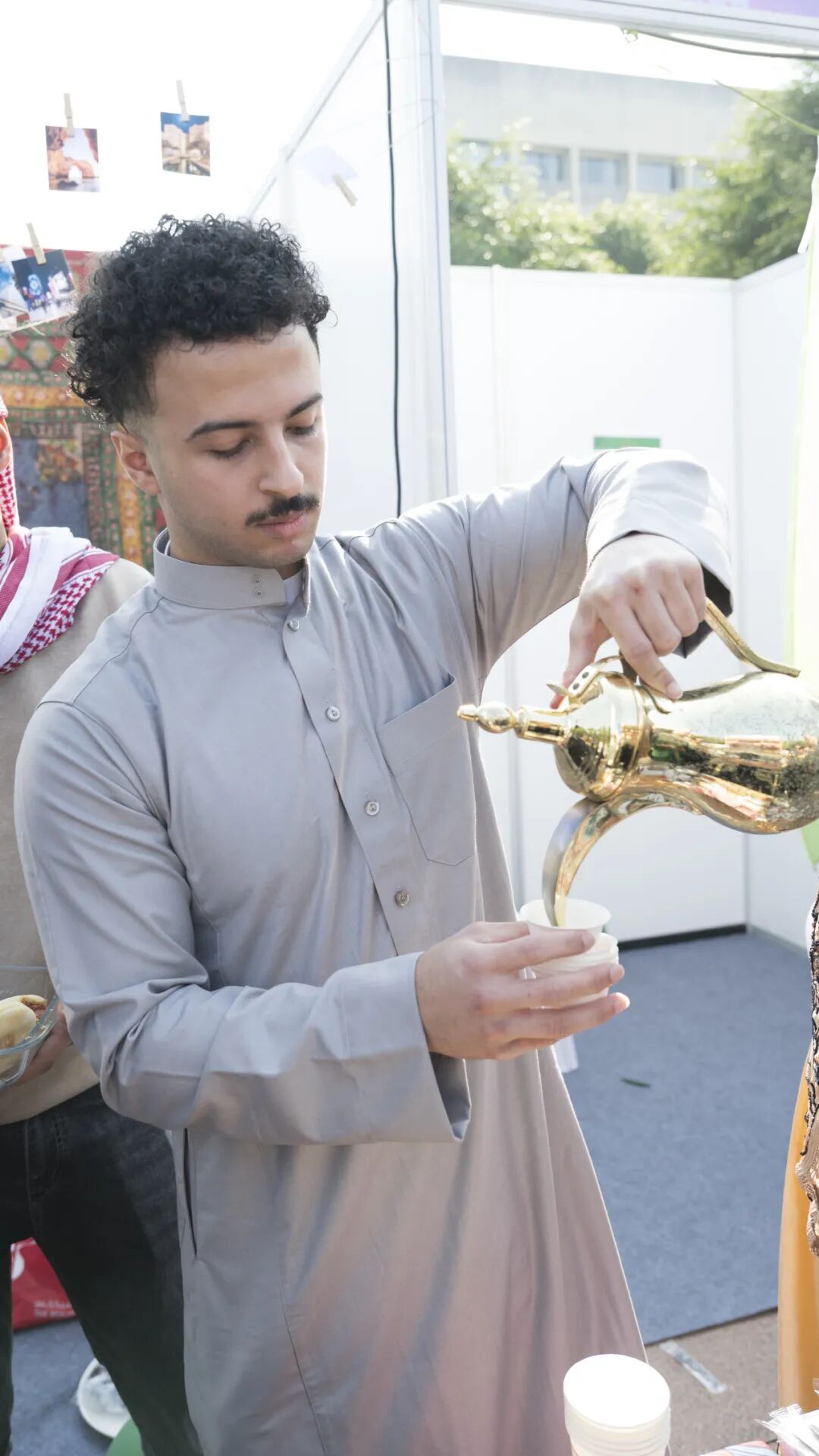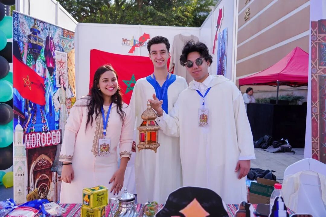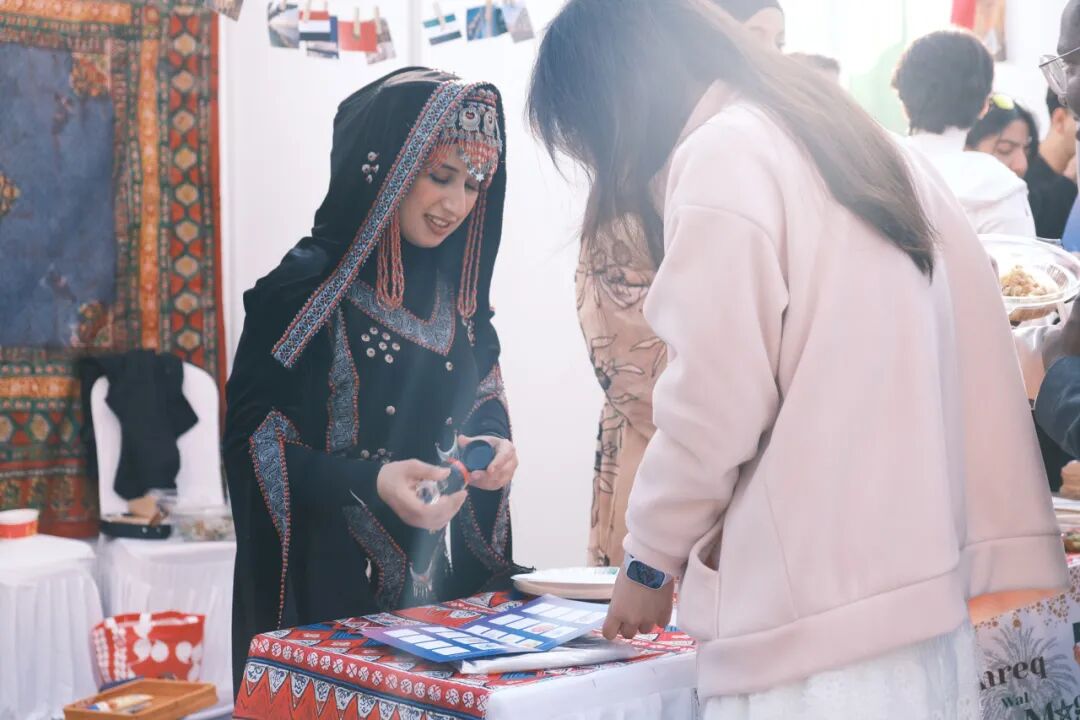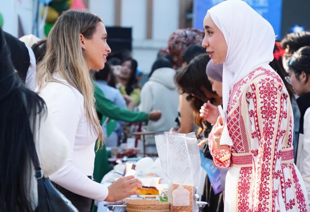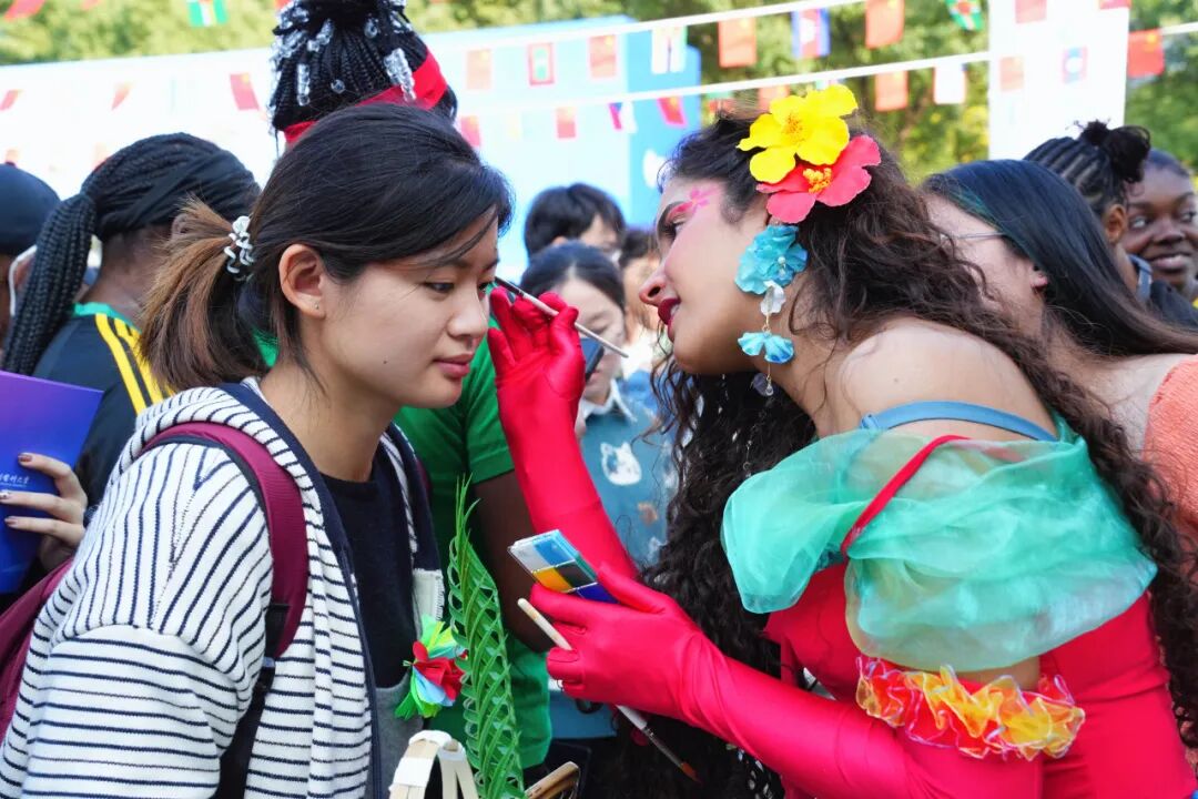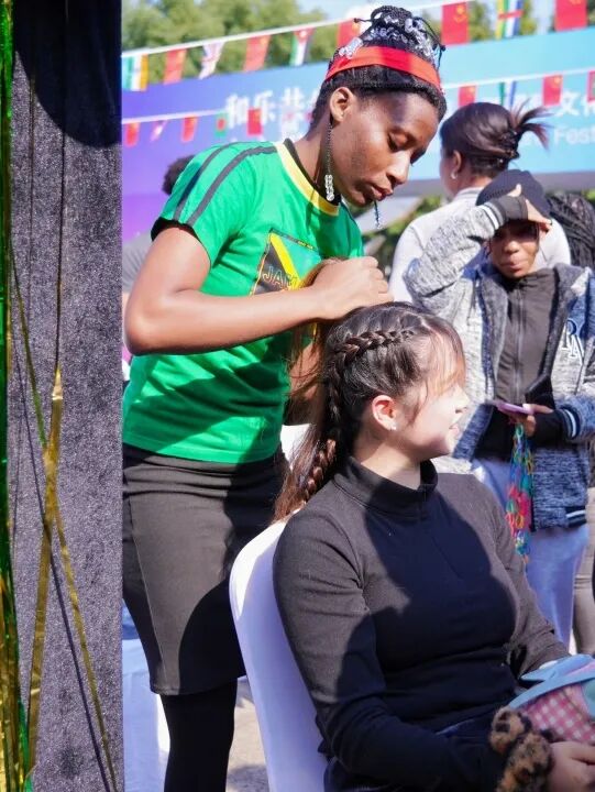 国际文化展区前排起了长队,成为现场打卡热门点。来自摩洛哥、塞内加尔、坦桑尼亚、牙买加、不丹、缅甸、土库曼斯坦、巴基斯坦、伊朗、也门等数十个国家的留学生,化身本国文化“代言人”,带来极具地域特色的展示。牙买加展位的雷鬼音乐动感十足;缅甸特色美食让人垂涎欲滴;不丹的香品体验区香气清雅;巴基斯坦的汉娜艺术以精美花纹吸引众多同学体验;波斯传统服饰展演则凭借华丽服饰与优美姿态……
