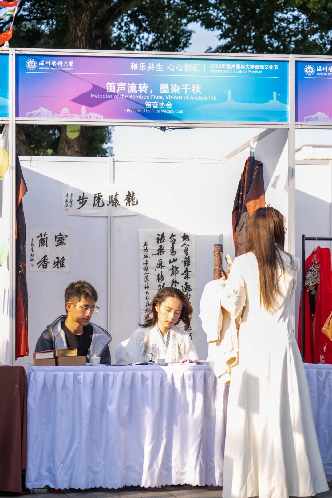 游园会是当天最具人气的活动之一。展位各具异域特色,各地美食、互动游戏、民俗文化体验,带来一场具有“国际范、国潮风、温医味”的多元文化碰撞。