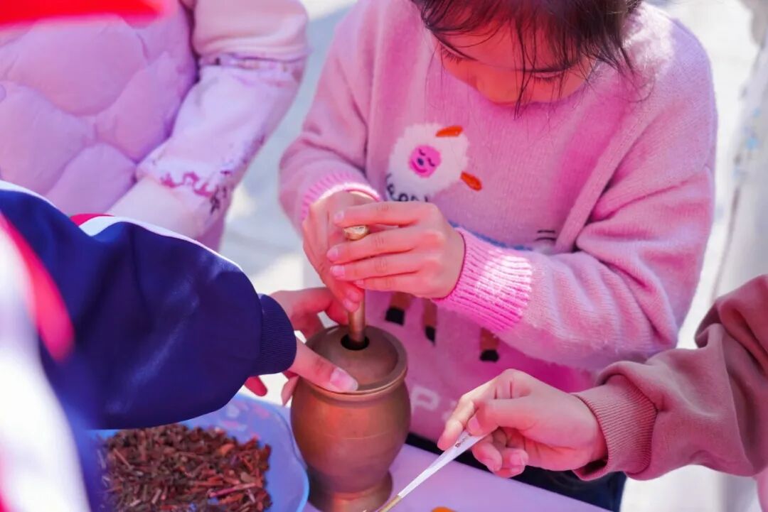 传统特色文化展区内容丰富,非遗传承、中医药文化、手工艺体验等主题亮点纷呈。“赋韵数创·非遗雅集”让传统非遗焕发数字活力;“香榛天使,护佑健康”香囊制作体验区里,大家亲手搭配草药、穿针引线,在指尖流转中感受传统养生智慧;“本草探秘·中医体验站”前,艾灸的温煦暖意,让体验过的同学们直呼“过瘾”。此外,茶艺表演的行云流水、民族乐器的婉转悠扬、投壶游戏的欢声笑语、汉服展示的古韵风华,让师生沉浸感受传统文化的独特魅力。