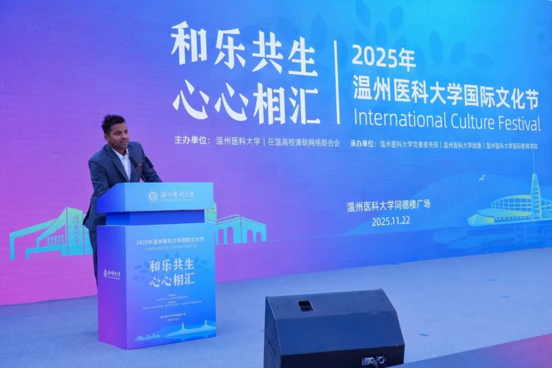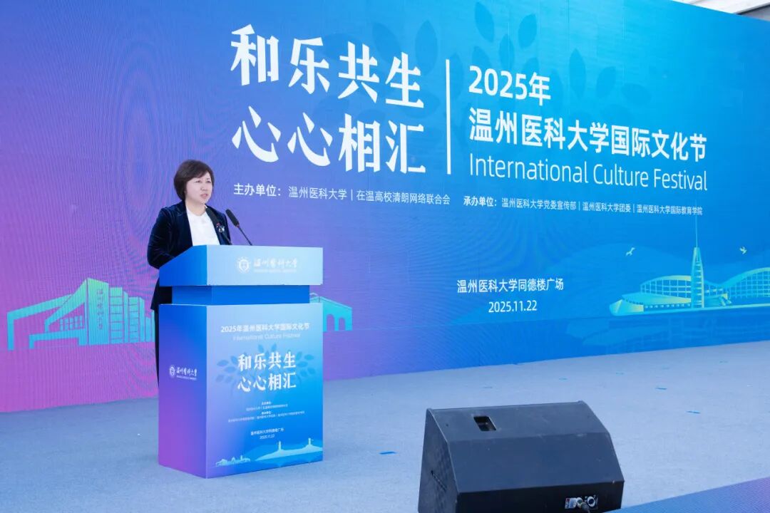 校党委委员、宣传部(教师工作部)部长李军红在致辞中表示,国际文化节是展示师生国际化风采、促进中外文明交流互鉴的重要平台,希望广大师生能以本次文化节为契机,做文明交流的使者,既要向世界讲好温医故事、温州故事、浙江故事、中国故事,更要在跨文化对话中汲取智慧。